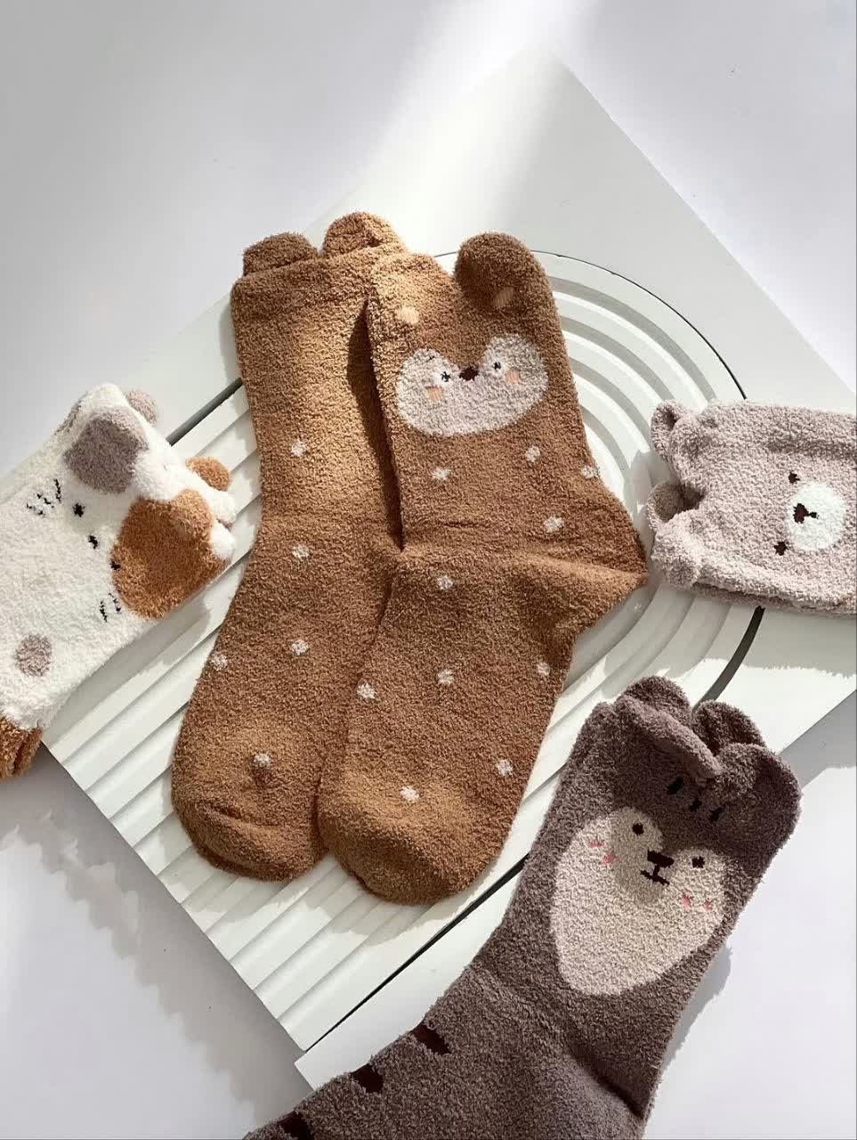 جوراب نیم ساق بوکله ( پشمی موهر ) دخترانه طرح گربه برند coco & hana