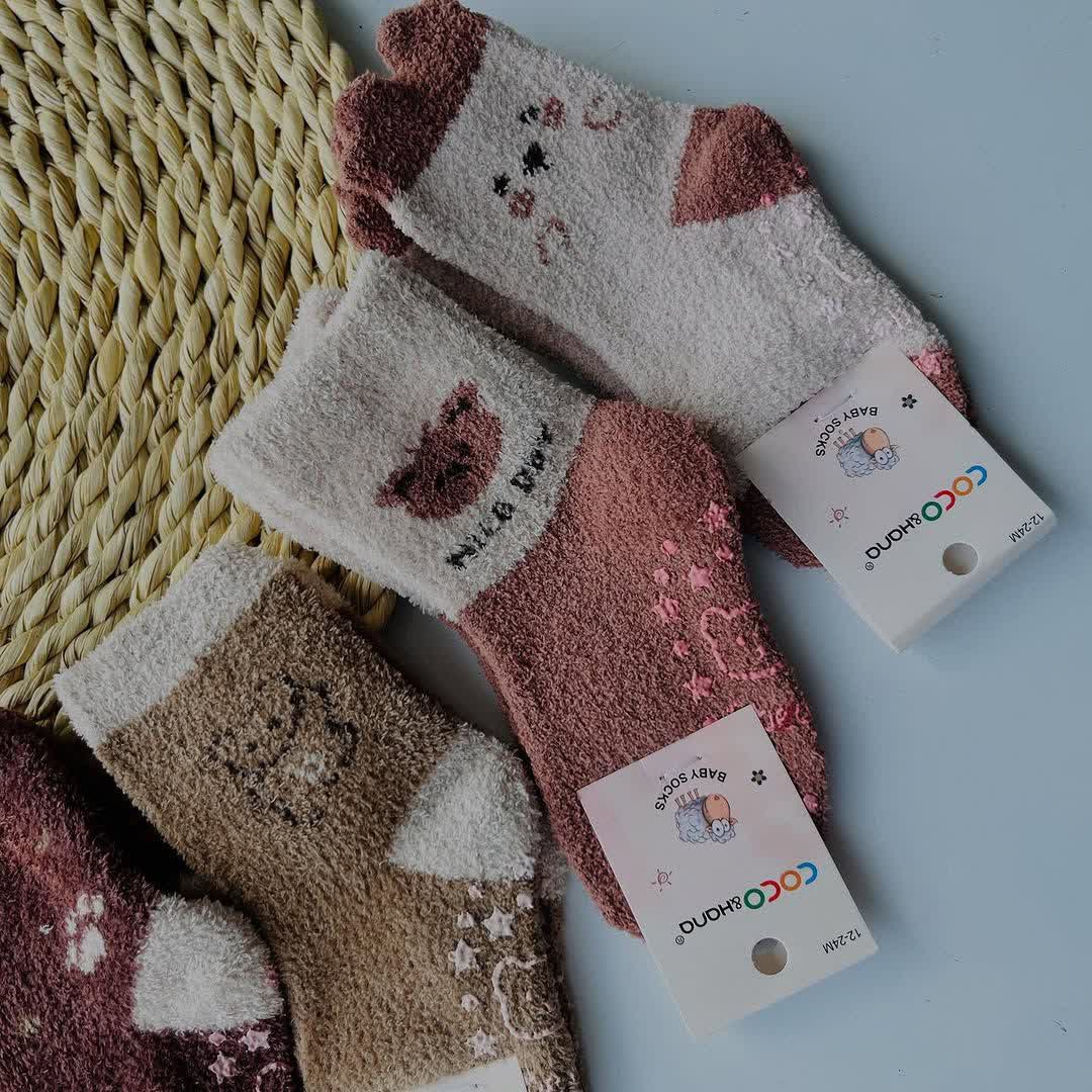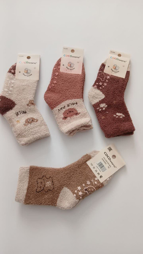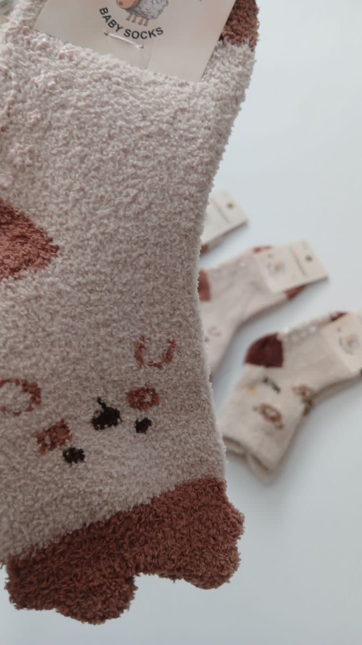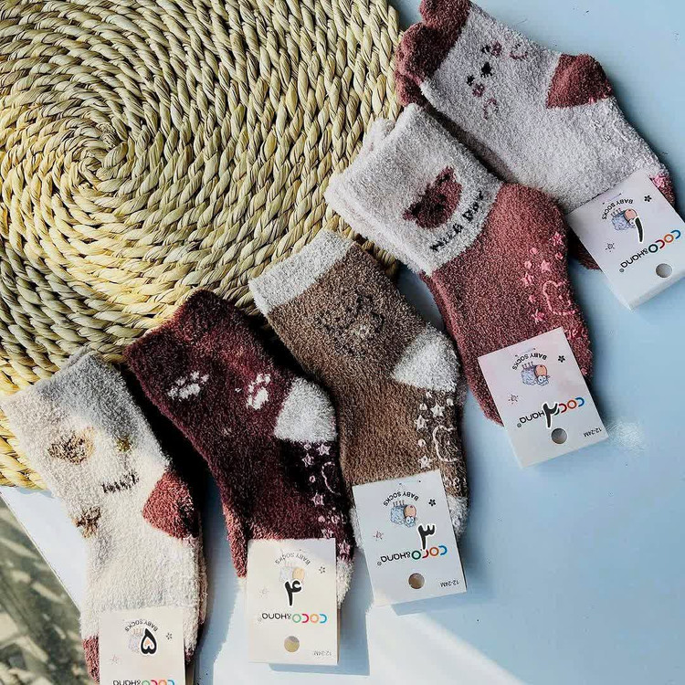 جوراب نیم ساق بوکله بچگانه زیراستپ دار طرح تدی های کوچک قهوه ای
