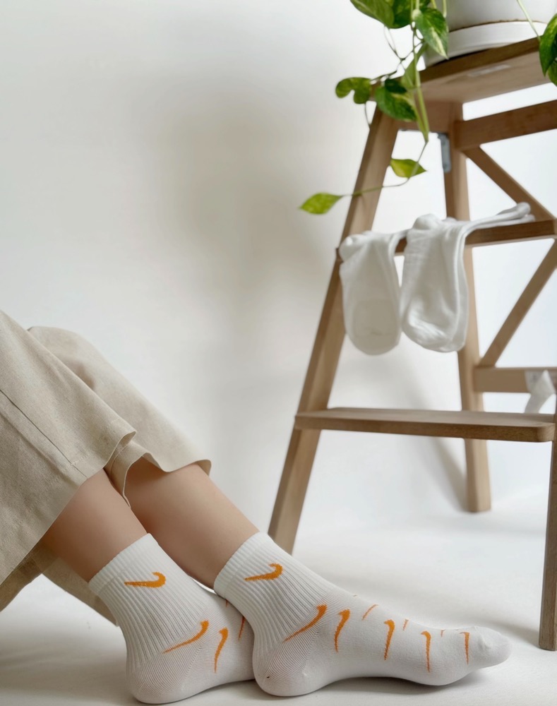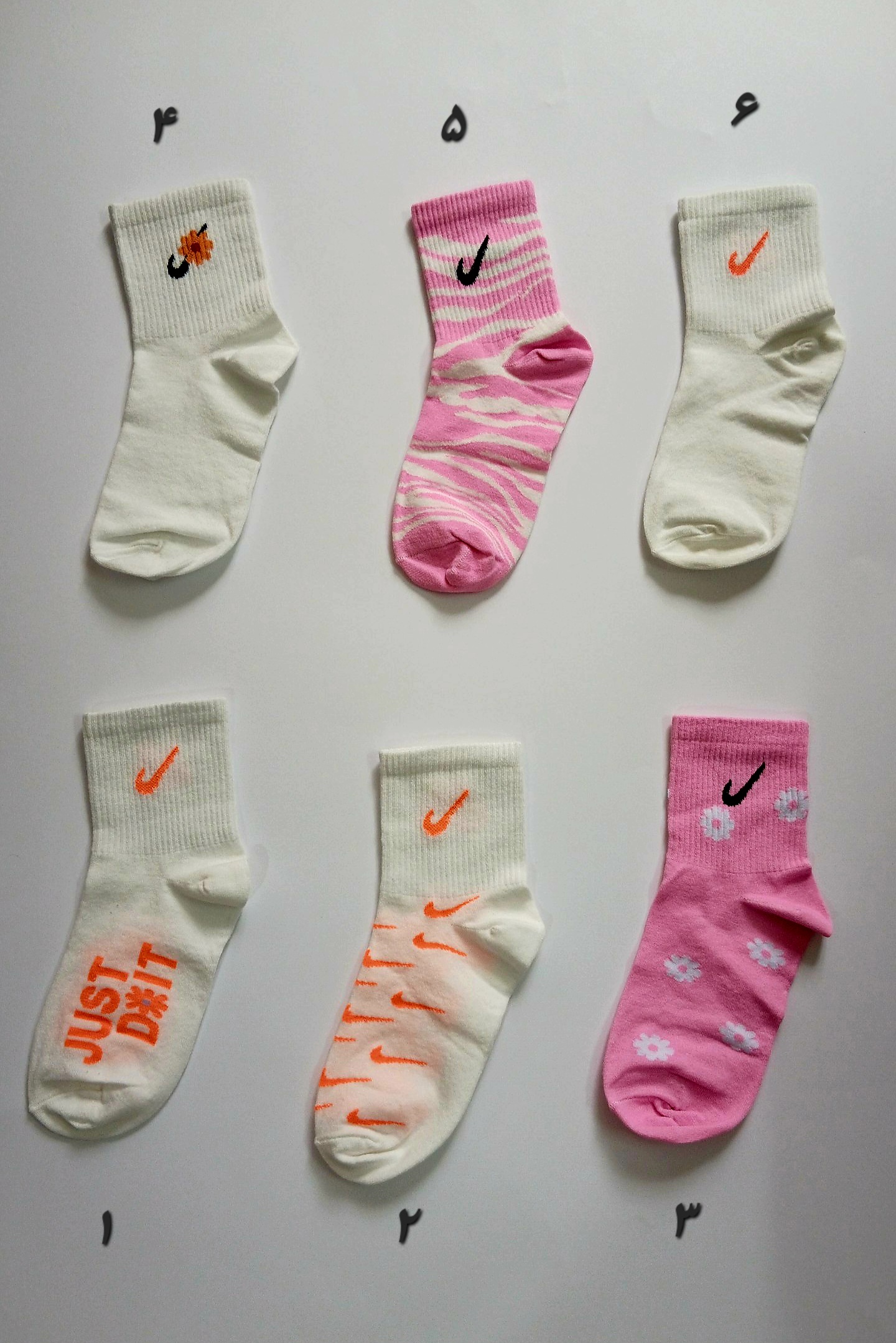 جوراب های فانتزی دخترانه نیم ساق با طرح های نایک و اسپورت فری سایز ۳۶ تا ۴۲ نخ با کیفیت هندی پنجه روسو ، کش انگلیسی و با دوام
