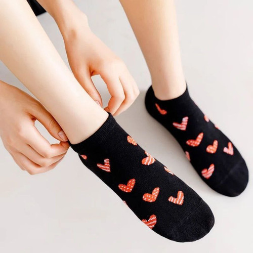 جوراب نخی مچی زنانه طرح قلب قرمز