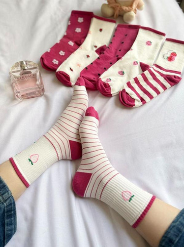 جوراب ساق دار فانتزی طرح توت فرنگی